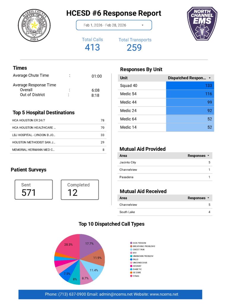 February 2025 North Channel EMS Response Report Post author:Timothy Sartin Post published:March 3, 2026 Post category:Response Reports Post comments:0 Comments February 2025 North Channel EMS/ Harris County ESD #6 Response Report Tags: response report Please Share This Share this content Opens in a new window Opens in a new window Opens in a new window Opens in a new window Opens in a new window Opens in a new window Opens in a new window Opens in a new window Opens in a new window Opens in a new window Opens in a new window Read more articles Previous PostJanuary 2025 North Channel EMS Response Report You Might Also Like October 2024 North Channel EMS Response Report November 4, 2024 July 2024 North Channel EMS Response Report August 12, 2024 December 2025 North Channel EMS Response Report January 6, 2026 Leave a Reply Cancel replyCommentEnter your name or username to comment Enter your email address to comment Enter your website URL (optional) Save my name, email, and website in this browser for the next time I comment.